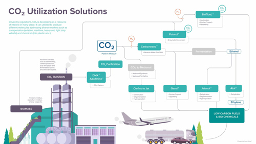 Widening CO2 use with reliable technologies. The transition to low-CI fuels relies on a progressive switch from fossil feedstocks to renewables. The emerging eFuels markets increase the possibility to meet emissions-reduction objectives, monetize CO2 use, advance low-carbon electricity and grow demand for clean and concentrated CO2