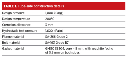FIG. 1 shows the dimensions of the flange and gasket, and TABLE 1 provides the tube-side construction details of the exchanger.