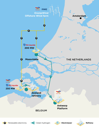 Air Liquide and Total will also establish a joint venture to build a 250-MW electrolyzer project in the Zeeland province of the Netherlands.