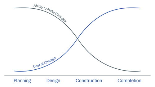 Developing a robust, holistic cost estimate as early as possible is critical due to the dynamics shown by the cost influence curve, illustrated in FIG. 2. Later in the development cycle, more and more costs become effectively locked in. The earlier that key parameters can be defined, the greater the opportunity for effective cost control. At a strategic level, more robust cost estimates early in the planning stage will help decision-makers better allocate limited capital.