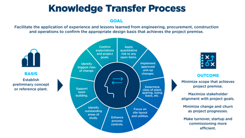 Structured knowledge transfer as a foundation for development. First-of-a-kind projects introduce the difficulty of aggregating limited existing knowledge that may be dispersed across stakeholders, including process owners, technology vendors/licensors, the engineering team and even sister industries. As project teams encounter unfamiliar territory, information gaps and shifting priorities can lead to overlooked risks, unexpected delays and scope creep.