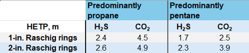 TABLE 1. HETP values (m) for H2S and CO2 with 1-in. and 2-in ceramic Raschig rings