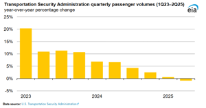 This fuel-efficiency trend is expected to continue, contributing to the EIA’s forecast deceleration in jet fuel consumption growth. After a slowdown in new aircraft deliveries in 2024, Cirium, an aviation analytics provider, expects aircraft deliveries to increase in 2025. This increase in deliveries should drive increased commercial fleet fuel economy as older models are switched out for more energy efficient newer ones.