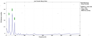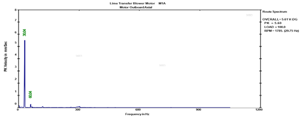 Looking at FIG. 3, it is evident why high vibration exceeding acceptable limits was seen at the site. Vibration measurements are normal during a motor solo run in a workshop—this is because the measured motor bearing housing natural frequency of 32 Hz is close to the motor running speed of 30 Hz, leading to “structural resonance.”