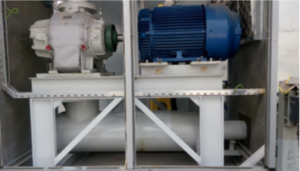 Structural modification. To mitigate high vibration, motor supporting structure stiffness was provided by adding two cross beams between the sides of the vertical supports (FIG. 5), as per ECSD recommendations. The motor vender agreed with this recommendation.