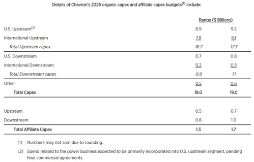 Chevron announced $18 B-$19-B CAPEX budget for 2026