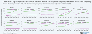 With 73 GW more clean capacity than fossil fuel capacity in use, China now has 51% of its power fleet drawing from clean sources and joins the ranks of Brazil, France and Germany as major economies powered mainly by clean energy sources.