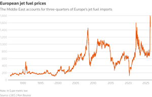 Regional stockpiles are also being depleted rapidly. Independently held jet fuel and kerosene stocks in the Amsterdam-Rotterdam-Antwerp refining and storage hub fell nearly 8% last week to 646,000 metric tons, the lowest level since March 2023, according to Dutch consultancy Insights Global.