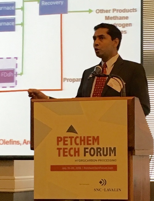 Hydrocarbon Processing’s inaugural Petchem Tech Forum began its second day with a keynote presentation from Dow Chemical. Manov Lahoti, commercial director for US olefins for Dow Chemical, provided an overview on global propylene market dynamics, as well as an overview of Dow Chemical’s new PDH unit and processing technology. According to Dow Chemical, on-purpose propylene demand growth will average 2%-3%/yr through 2035. Between 2016 and 2035, propylene demand is forecasted to outgrow production capacity. By 2020, propane hydrogenation (PDH) will account for 15% of new propylene capacity. The majority of new PDH capacity will be located in Asia. Dow hopes to capitalize on this supply gap with its fluidized catalytic dehydrogenation (FCdh) technology.