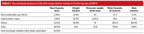 Throughout this article, the vacuum tower design basis overhead load to the ejector system is provided in TABLE 1.