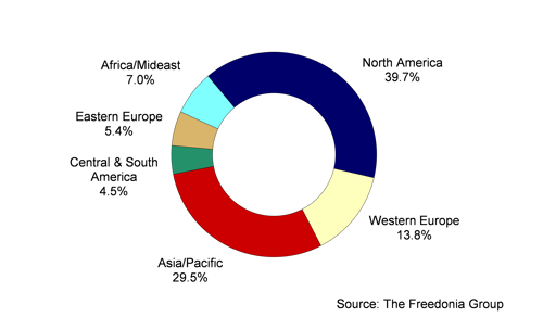 The continued introduction of new catalysts will sustain growth in the mature markets of North America, Western Europe and Japan. The Freedonia Group noted, “The established nature of fuel sulfur regulations in these markets, declining gasoline consumption and decreasing refined products output will restrain stronger gains.”