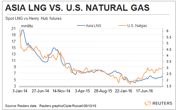 Up until 2014, LNG prices in Asia had very little correlation with US natural gas futures, but with the advent of US LNG exports, global gas prices started to converge in anticipation of a more integrated market.