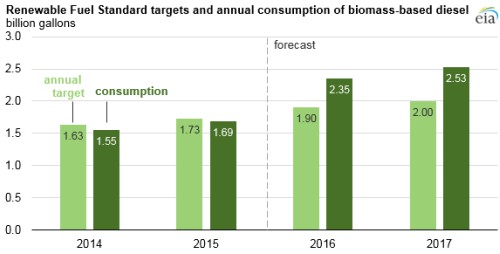 EIA: Biomass-based diesel growth due to final 2017 RFS targets