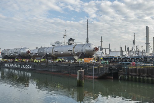 ROTTERDAM -- ExxonMobil successfully completed the heavy lift of its vacuum fractionation tower for the hydrocracker at its Rotterdam refinery this April.