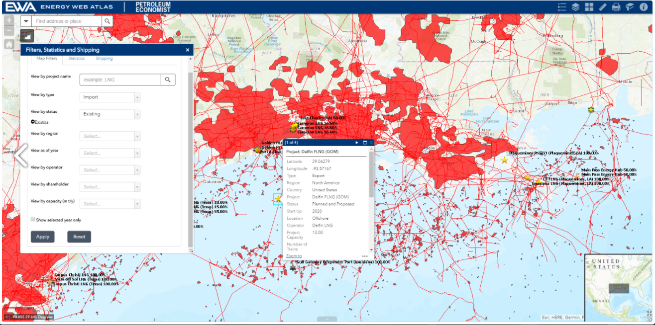 A real-time project information platform, the ESRI-based Energy Web Atlas (EWA) is a compilation of geospatial datasets covering the energy industry with maps and data dedicated to the LNG industry. It delivers actionable market intelligence within one easy-to-use, web-based resource.