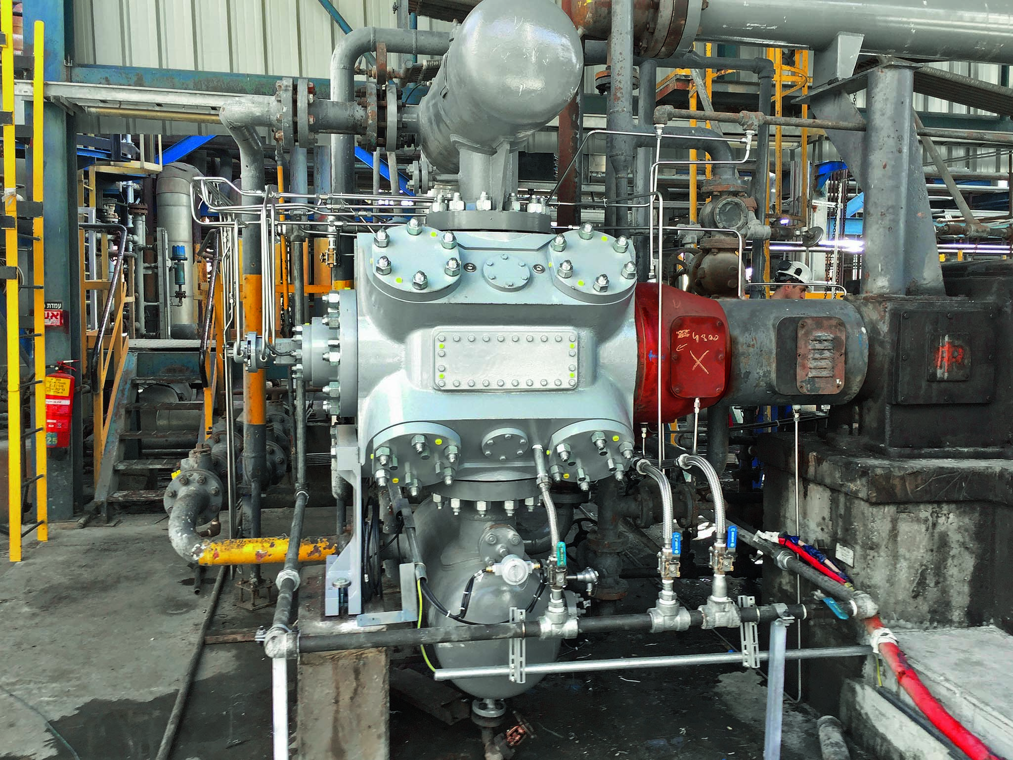 Besides upgrading all three hydrogen compressors to the latest technology including conformity with API 618, advanced technology designs were applied to cylinders and all related compressor components, and a new motor with flexible coupling for lower maintenance and higher reliability was also installed.