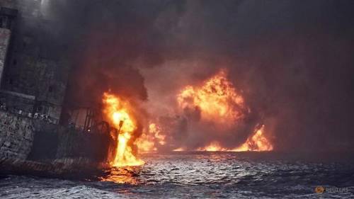 BEIJING (Reuters) - An Iranian oil tanker has sunk after burning for more than a week following a collision on Jan. 6 in the East China Sea, Chinese state media said on Sunday, adding that a large amount of oil was burning in the surrounding waters.