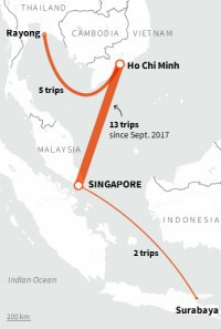 Recent shipping data in Thomson Reuters Eikon showed the Prime South was transporting fuel between Ho Chi Minh City, Vietnam, and Singapore on a regular basis. Its destination was also listed as Ho Chi Minh, before being seized.