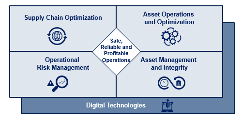 In response to the abovementioned needs, Yokogawa is developing solutions that utilize digital technologies to optimize and automate companies' business processes. These solutions will help to optimize the supply chain and the operation of plant facilities, manage organizational risks, and make maximum efficient use of plant assets to ensure safe, reliable, and profitable operations. These solutions will also help with facility management.