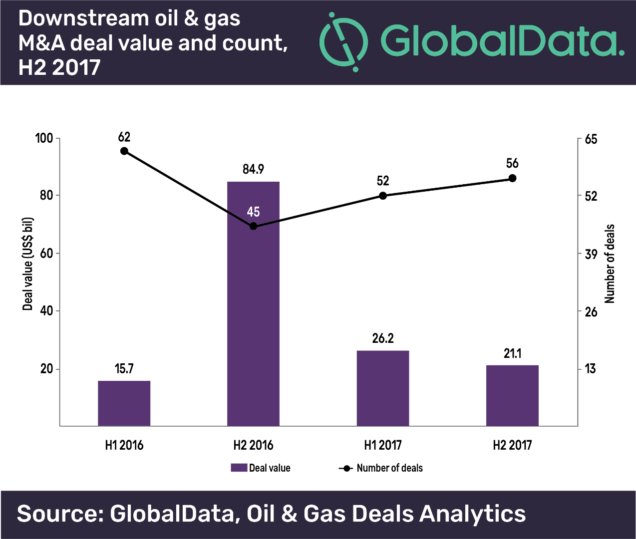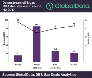 A combined value of $21.1bn in mergers and acquisitions (M&A) were announced in the downstream sector in H2 2017, according to GlobalData, a leading data and analytics company.