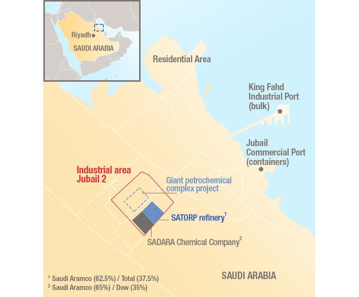 The complex will be integrated downstream of the SATORP refinery, a joint venture between Saudi Aramco (62.5%) and Total (37.5%) in Jubail, in a move designed to fully exploit operational synergies. This world-class refinery, whose capacity increased from 400 Mbpd at its start-up in 2014 to 440 Mbpd today, is recognized as being one of the most efficient in the world.