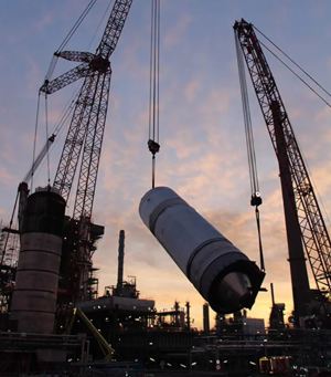 Placing a new coke drum (IMAGE SOURCE: MAMMOET)