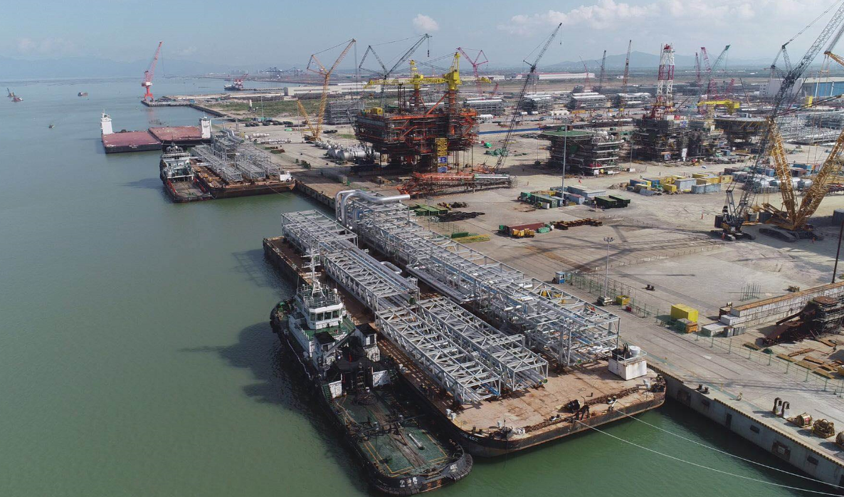 Modules are being constructed at the COOEC-Fluor Heavy Industries Co., Ltd. (COOEC-Fluor) fabrication yard in Zhuhai, China. The first 14 of the 188 modules were loaded onto a shipping barge and sailed away in May to Kuwait. The sail-away of the modules was marked by a ceremony officiated by Hatem Al-Awadhi, KIPIC’s deputy chief executive officer