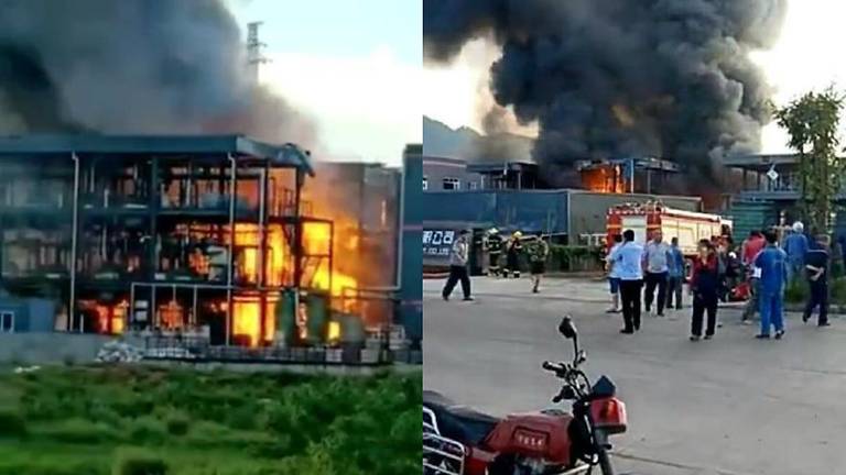 Photographs on Chinese social media showed a huge fire and plumes of smoke rising from the facility.