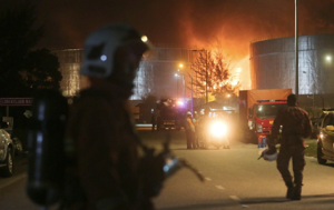 The fire quickly spread to a second and third tank as fire crews worked to contain the fire, which left one person severely injured.