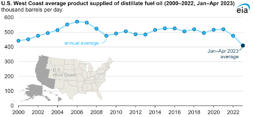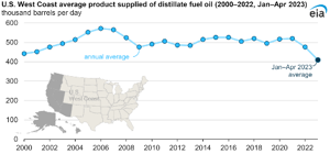 Biofuels are displacing petroleum-based distillate fuel oil consumption on the West Coast
