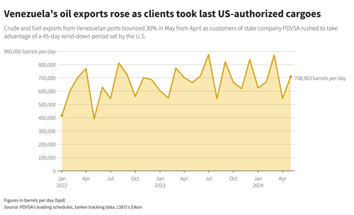 Venezuela's May oil exports rise 30% during U.S. wind-down period