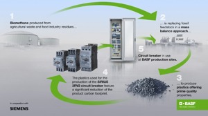 Siemens Smart Infrastructure and BASF have announced the first electrical safety product to include components made from biomass-balanced plastics. Used across industrial and infrastructure applications, Siemens SIRIUS 3RV2 circuit breaker is now being manufactured using Ultramid® BMBcertTM and Ultradur® BMBcertTM from BASF, where fossil feedstock at the beginning of the value chain is replaced by biomethane derived from renewable sources such as agricultural waste. Both materials offer the same quality and performance as conventional plastics. The material changeover in the SIRIUS 3RV2 circuit breaker production will reduce the emission of carbon dioxide equivalents by ~270 tpy. Customers using these products contribute to a circular economy towards a more sustainable future.