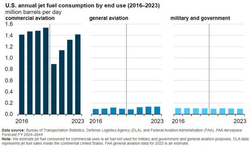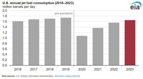 EIA: U.S. jet fuel consumption in 2023 remained below the pre-pandemic high