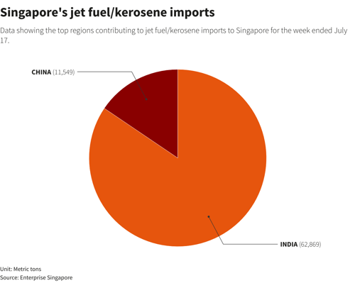 So far, no more jet fuel cargoes from India are slated to arrive into Singapore for July, the data showed.