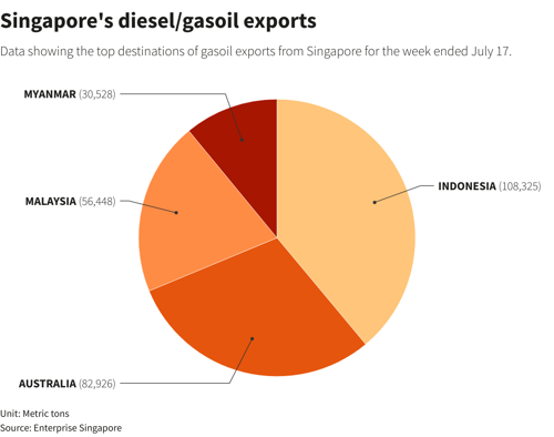 Inventories of diesel/gasoil and jet fuel/kerosene at the oil storage hub climbed to 11.145 MMbbl for the week ended July 17 from 8.454 MMbbl the previous week.