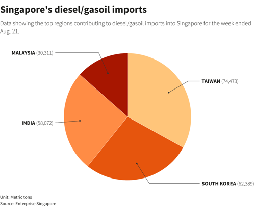 Up to 120,000 metric t more volumes from South Korea and Taiwan are slated to reach Singapore by the end of August, LSEG shiptracking data showed.