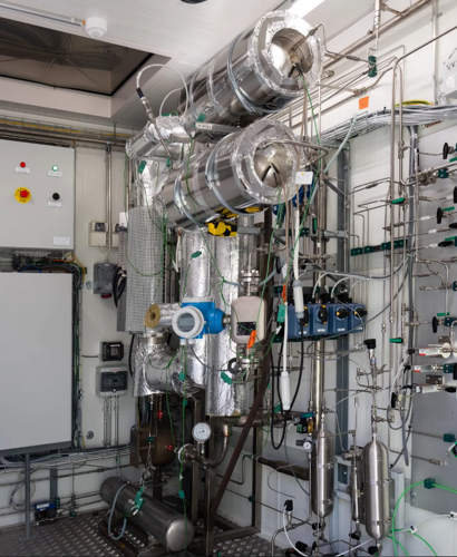 FIG. 1. VTT's pilot equipment for converting CO2 into synthesis gas. Synthesis gas produces ethylene and propane gases for polymer production.