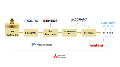 Indorama Ventures Public Company Limited, as part of a supply chain collaboration with Suntory, ENEOS Corporation, Mitsubishi Corporation, Iwatani and Neste, will launch the world’s first1 bio-PET bottle for commercial scale, made from ISCC+ certified bio-paraxylene2 This collaboration marks a significant milestone in the journey toward sustainable packaging, introducing PET bottles derived from used cooking oil. PET bottles made from this technology can significantly reduce CO2 emissions of products.