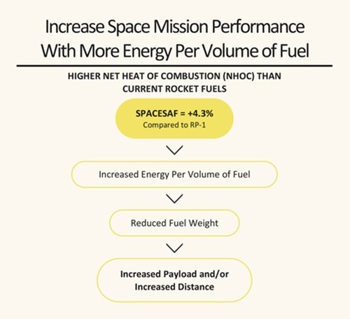 CleanJoule’s SpaceSAF delivers on the need for sustainable space missions while increasing payload due to a > 4% improvement in energy density compared to existing petroleum-derived fuels.