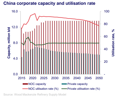 Weaker players were effectively put on notice by Beijing in 2023 when it vowed to weed out the smallest plants under a national refining capacity cap of 20 MMbpd by 2025, only slightly above 19 million bpd currently.