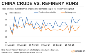 China's surplus crude oil surges in June, giving refiners options