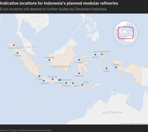 Indonesia plans to build a network of small modular refineries to process U.S. and domestic oil, aiming to reduce gasoline imports, but analysts warn the switch in strategy from large-scale refining facilities could prove uneconomical.