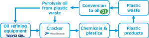 Now, this collaborative study between Taiyo Oil and Mitsui Chemicals represents the next step for both companies, aiming to expand the supply of chemically recycled products. Specifically, the study aims to have Taiyo Oil's Shikoku Operations handle the heavy fraction of pyrolysis oil from plastic waste, which is difficult for Mitsui Chemicals to process with its crackers. Chemically recycled naphtha, propylene and other products based on the mass balance approach will then be supplied to Mitsui Chemicals. Efforts will also be made to expand the range of waste plastic feedstocks that can be utilized. Further, the two companies will study to expand the supply of bio-based products.
