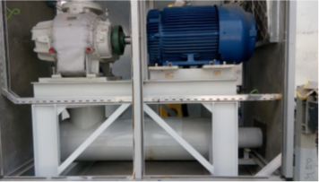 Structural modification. To mitigate high vibration, motor supporting structure stiffness was provided by adding two cross beams between the sides of the vertical supports (FIG. 5), as per ECSD recommendations. The motor vender agreed with this recommendation.