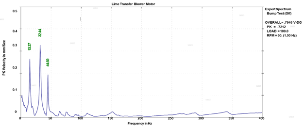 Results. After the structural modifications, the vibration levels drastically reduced at the motor DE (from 5.4 mm/sec to 2.5 mm/sec peak) and NDE (5.6 mm/sec to 2.4 mm/sec peak) axial directions (TABLE 3).